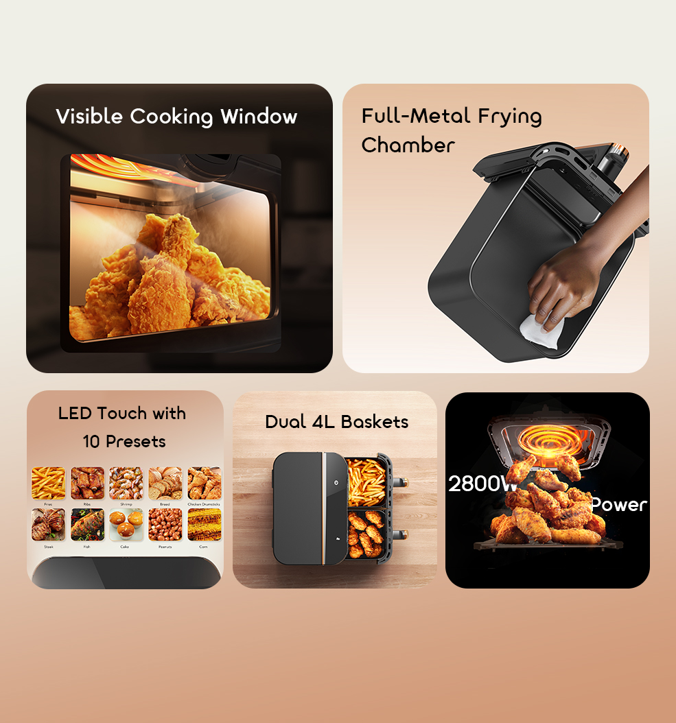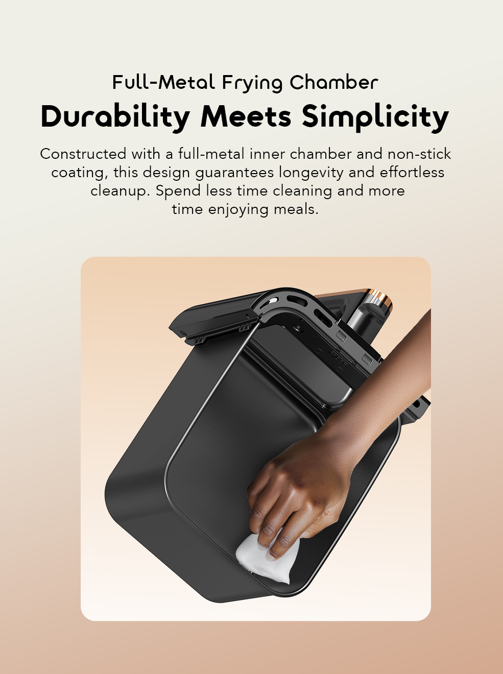 Material of the Pot: 304 Stainless Steel Grill Material: Aluminum Plated Plate + Non-Stick Pot Coating Rated Voltage: 220-240V 50/60Hz Rated Power: 2800W Capacity: 8L *oraimo Lab test results